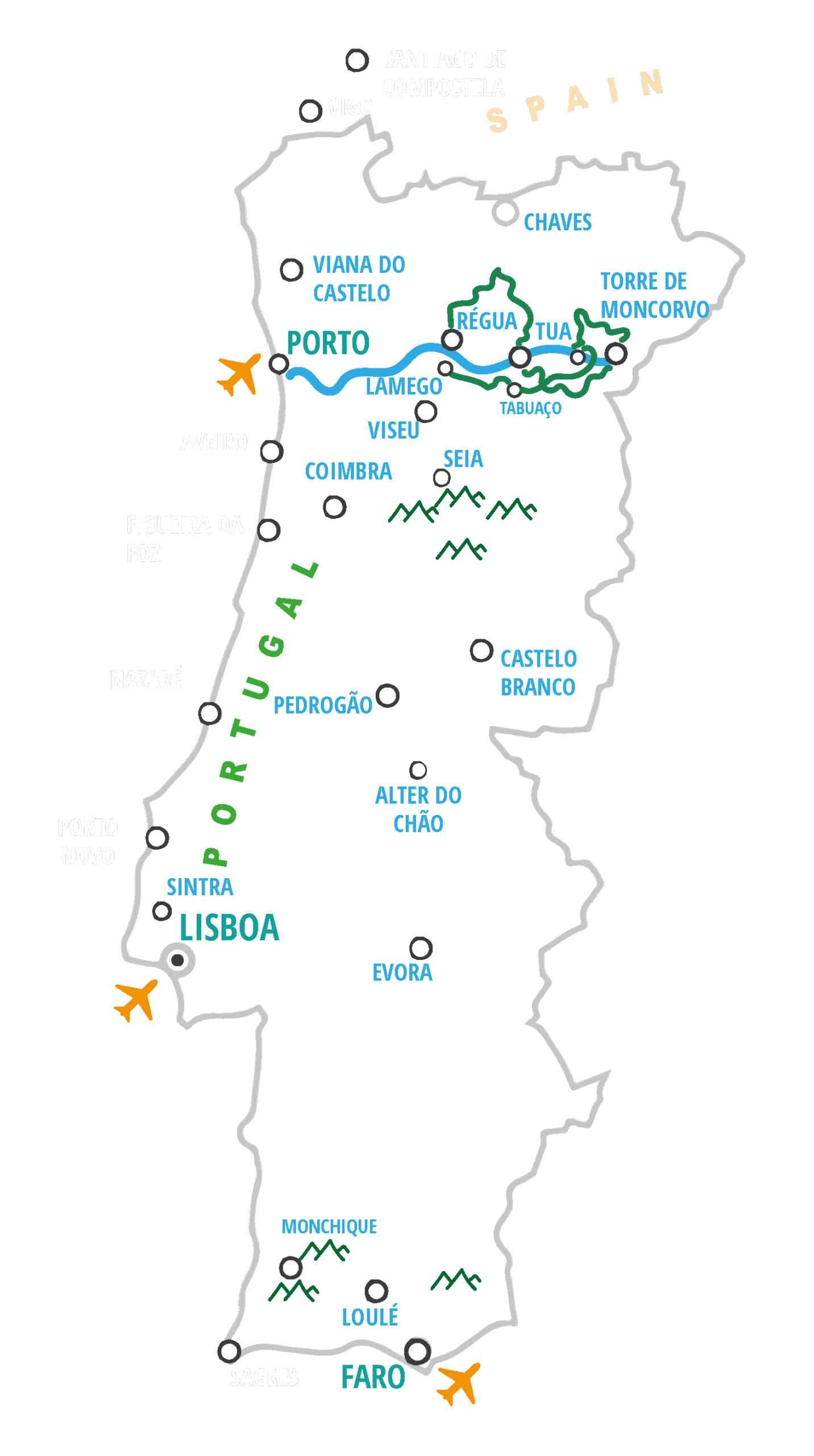 Our tour explores the eastern part of this region, away from Porto, in the upper Douro Valley known as the ‘Alto Douro’. This is because the roads and tracks closer to Porto are much busier and honestly, not nearly as nice as the area upstream of Peso da Regua. It’s so important to us that our clients ride on quiet, safe roads – and this area is perfect for that.