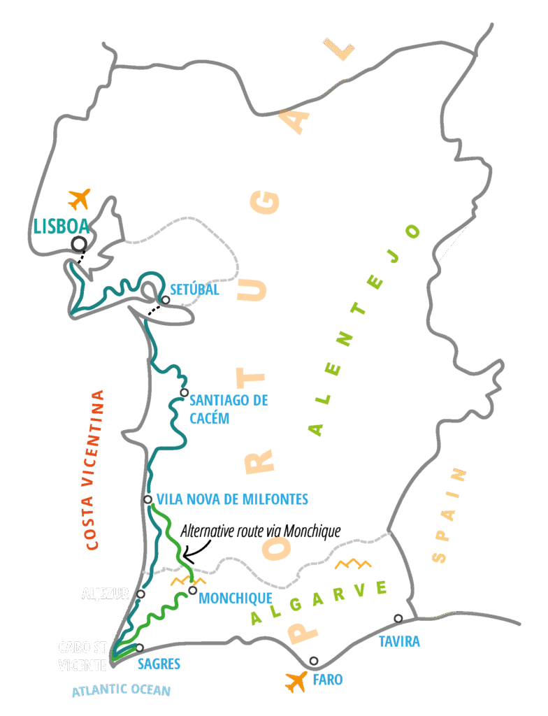 Incredible self-guided cycling tour along the Costa Vicentina from Lisbon to Sagres. Download route files only from just €200.